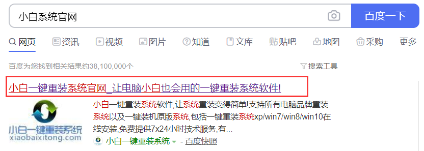 1、首先在百度是搜索【小白系统官网】。
