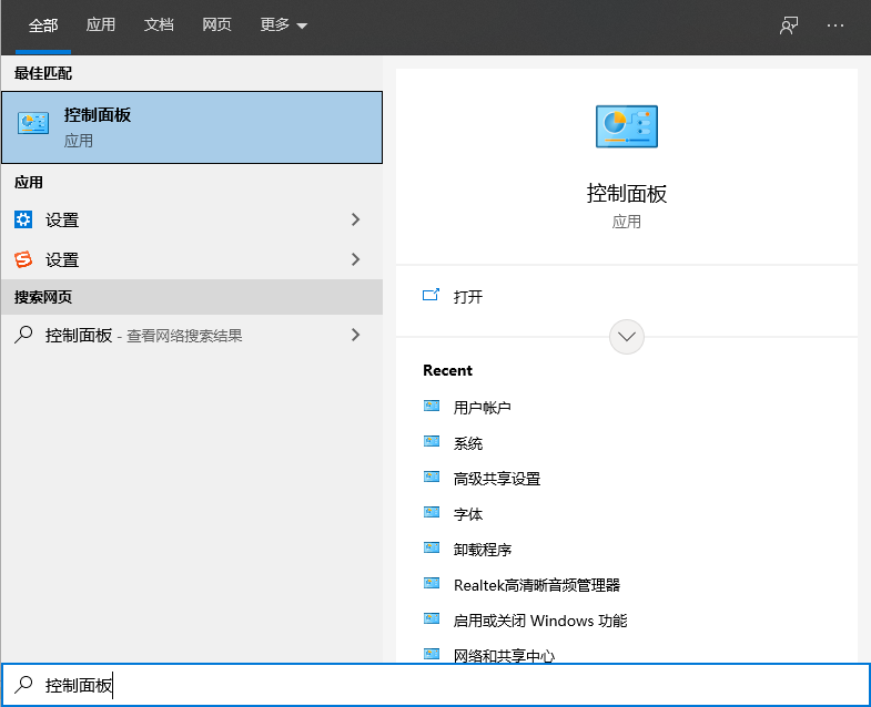 1、点击桌面左下角的搜索按钮打开搜索框,输入控制面板找到后并打开。