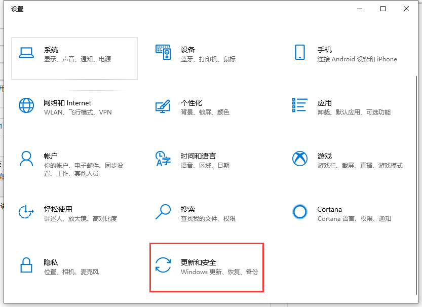 1、“win+i”打开设置。然后,在弹出的Windows设置窗口中,点击更新和安全的图标。