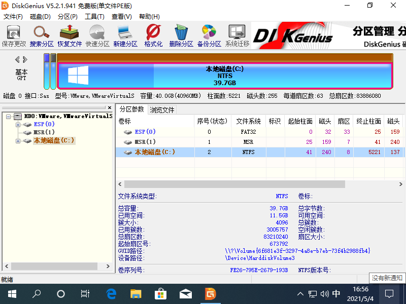 1、百度搜索 DiskGenius 在官网下载软件,下载后直接打开。