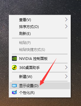 1、在桌面右击鼠标,选择并点击【显示设置】。