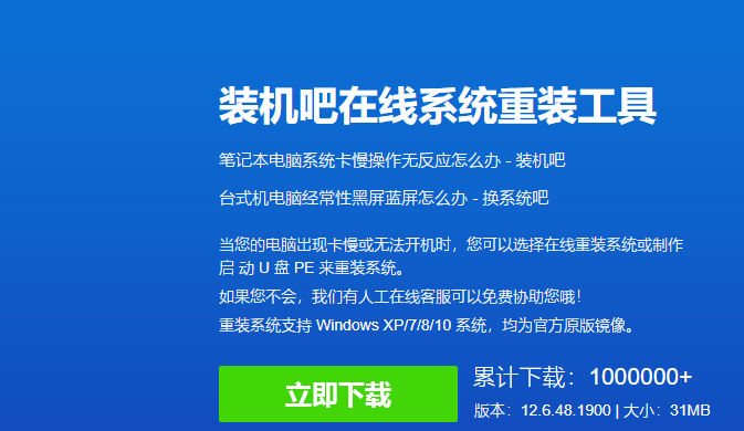 装机吧 - 系统装机大师 最简单易用的系统重装工具,让我们一起装机吧!支持 Windows XP、7、8、 10 原版镜像安装。支持 U 盘 PE 制作、PE 联网等多种功能选择。