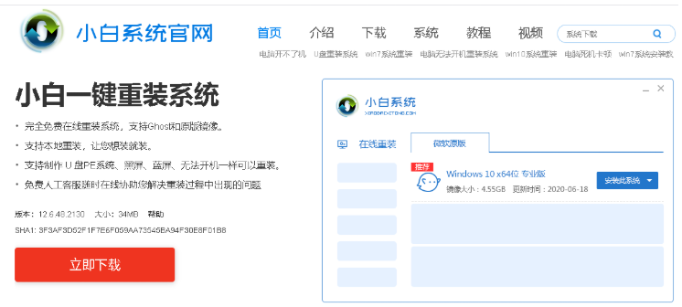1.首先下载新版的小白一键重装系统,直接进入首页单击下载。