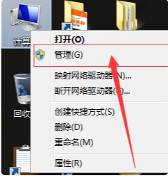 1.左键单击“我的电脑”(计算机),选择管理,右键单击。