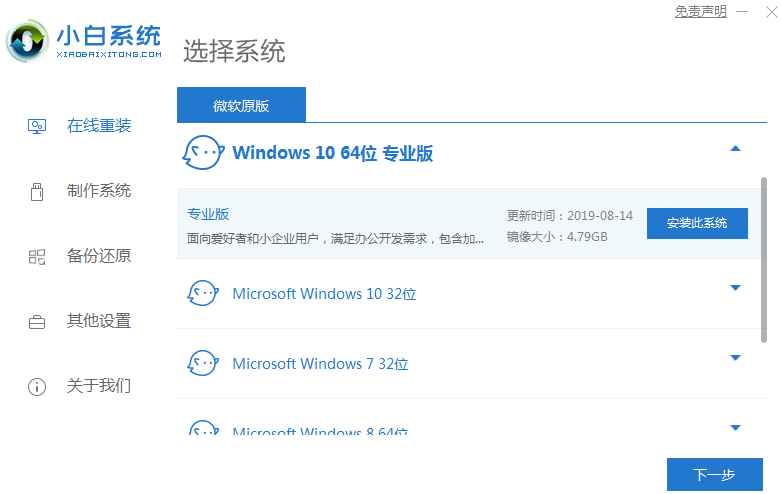 1.首先下载一个小白重装系统软件,然后点击在线重装,下载win10系统。