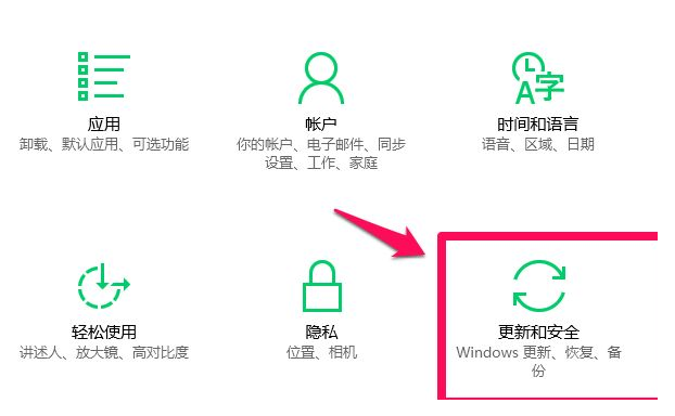 1.回到系统桌面后,我们单击进入左侧的开始菜单,找到系统设置,进入到其首页当中,单击出现的更新和安全按钮。