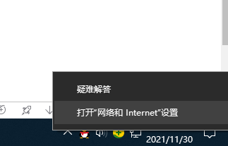1、右键任务栏内上的网络图标,点击【打开“网络和Internet”设置】。