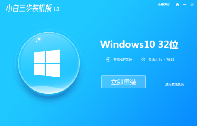 1、首先我们进入到小白三步装机版工具的主页面,选择win10系统,找到【立即重装】选项。