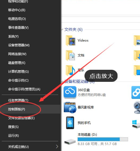 1、在Win10系统下,鼠标右键点击“开始”图标按钮,在弹出的菜单选项框中找到“控制面板”选项并点击它。如图所示: