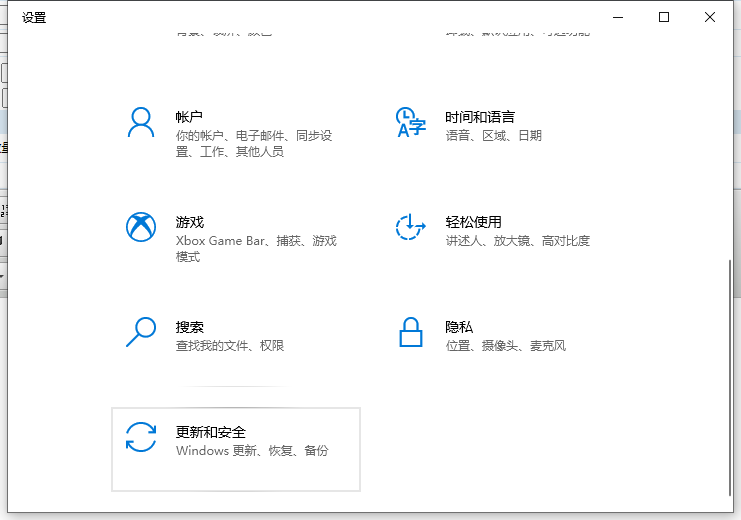 1、按下win键+i键打开windows设置,点击更新和安全。