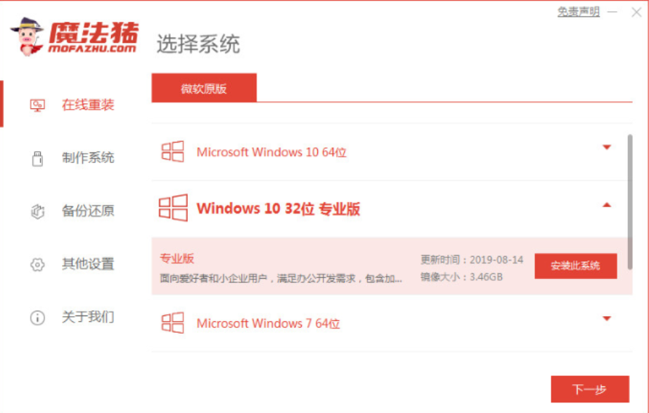 借助魔法猪工具在线安装win10系统: