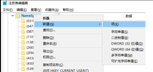 4、在该目录下新建项:{645FFO40-5081-101B-9F08-00AA002F954E}。