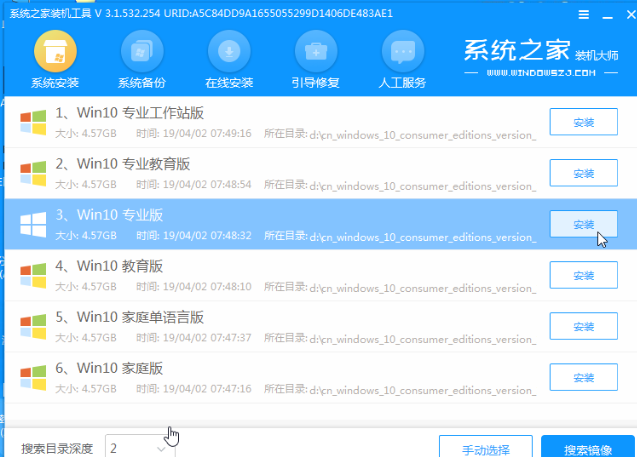 6、打开系统之家装机工具,选择win10系统点击安装。