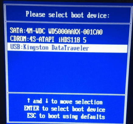 4、把u盘启动盘插入要重装的电脑中,开机不断按启动热键,选择u盘启动回车。
