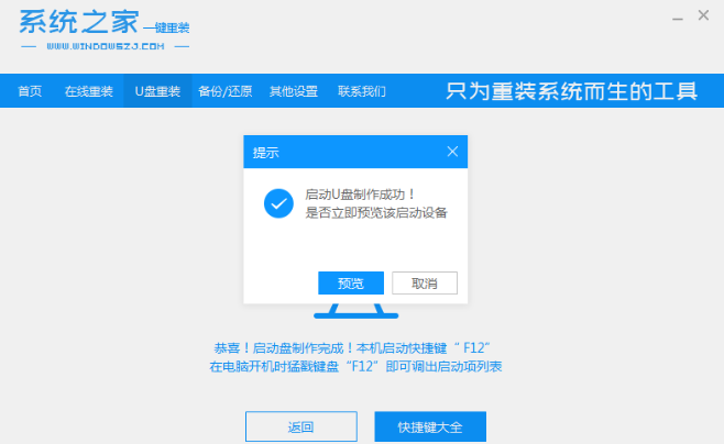 3、记住自己电脑对应的启动热键,确认后拔除u盘。