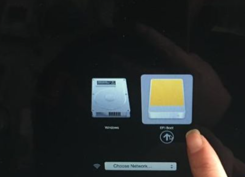 1、将U盘启动盘插入苹果笔记本上,重启进入启动选择界面;