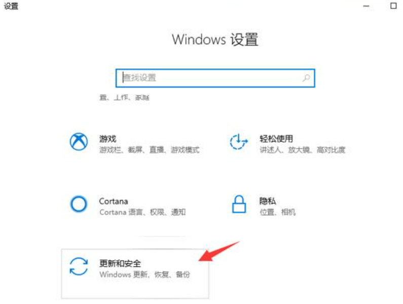 1、同时按下键盘快捷键Win+i,打开设置界面,然后点击更新与安全”。