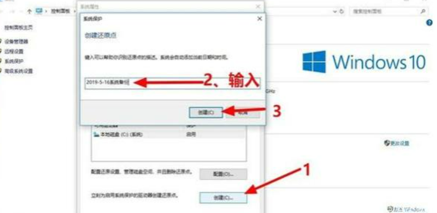 3、然后点击“创建”,输入还原点描述后,点击“创建”,下图: