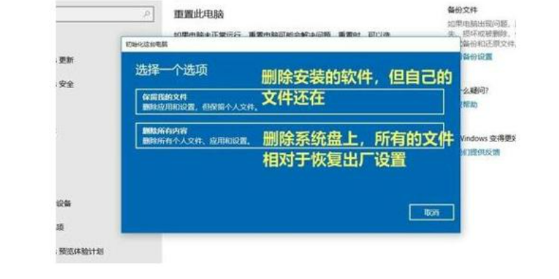 ①保留我的文件:删除你的电脑安装的任何软件,但是文件还在。