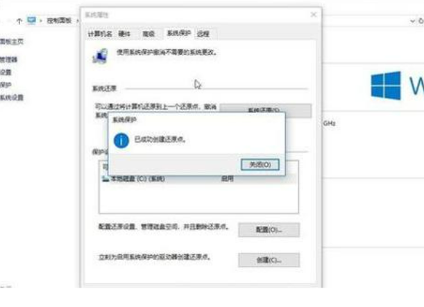 4、然后等待一会就可以看到创建还原点成功了。