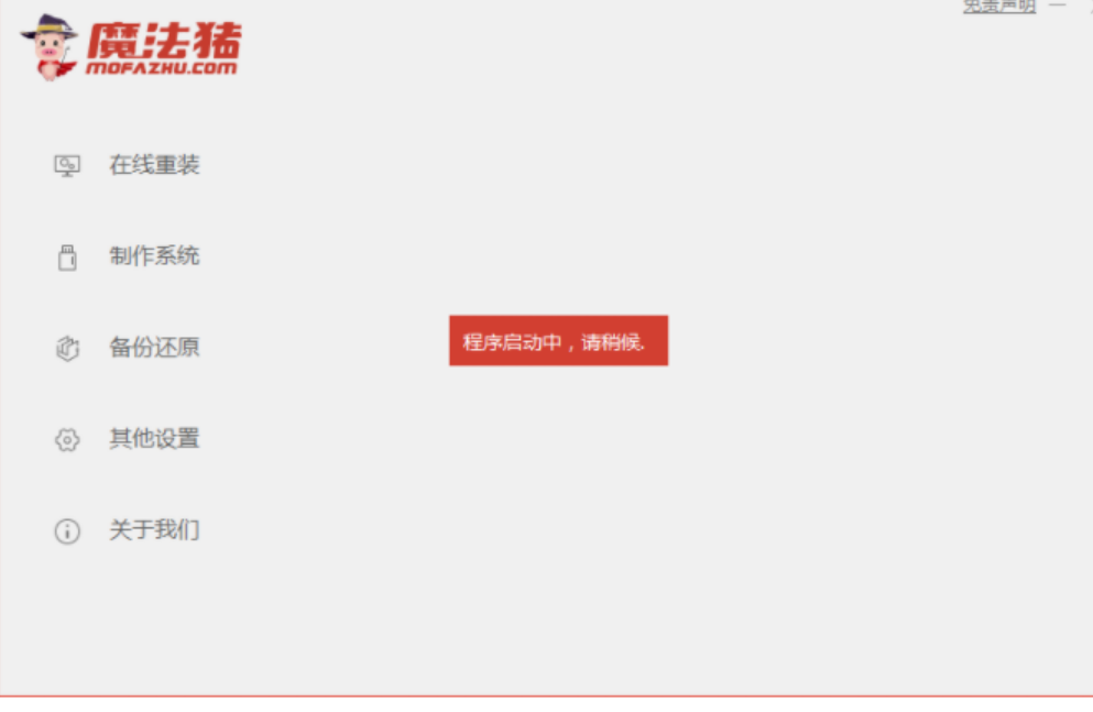 1、首先我们打开魔法猪一键重装软件,等待软件检测环境。
