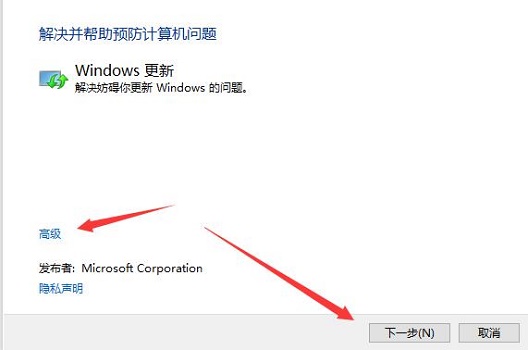 2、然后选择系统更新中的“使用‘Windows 更新’解决问题”。