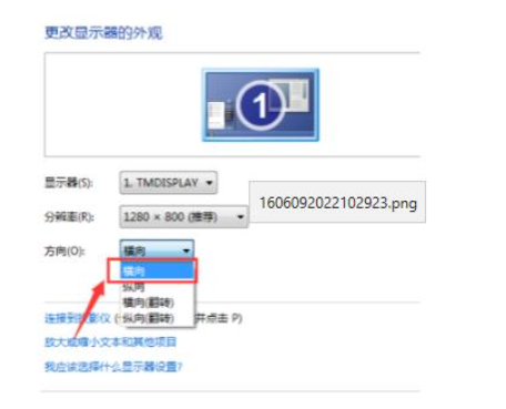 5、进入更改显示器的外观界面找打“方向”按钮并设置显示器为横向。