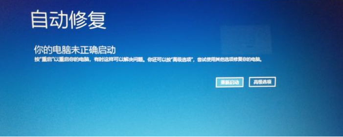 2、然后会使电脑出现“自动修复”界面,点击“高级修复选项”进入;