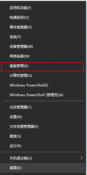 1、鼠标右击桌面左下角的开始按钮,然后选择“磁盘管理器”。