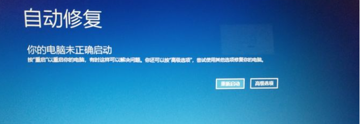 1、按下win10电脑开机键,出现微软徽标界面后又长按电源键强制关机。重复此步骤三次,等待自动修复完成,选择高级选项进入。