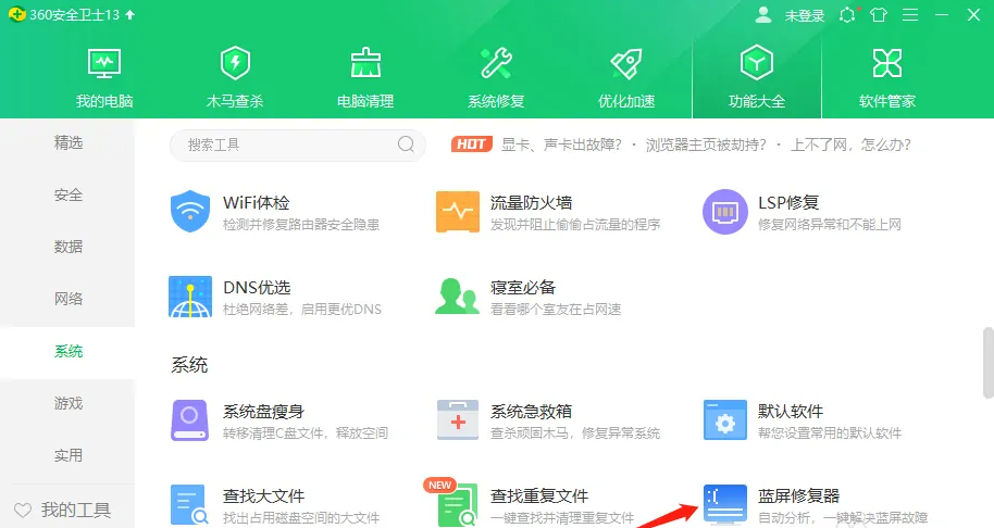 3、找到蓝屏修复器并点击,然后扫描修复即可。