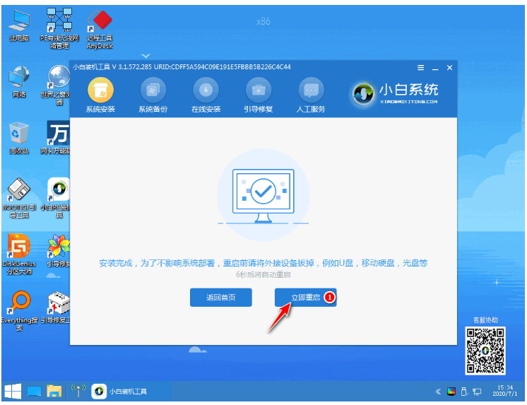 7.等待系统安装完成后,提示我们重启电脑时,我们点击立即重启。