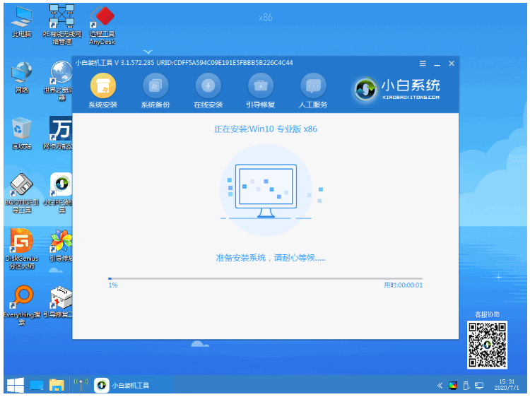 6.进入pe系统后小白装机工具会自动重装系统,耐心等待。