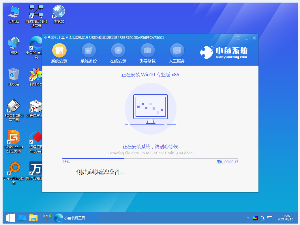 5、进入PE系统后软件会自动安装系统,耐心等待即可。
