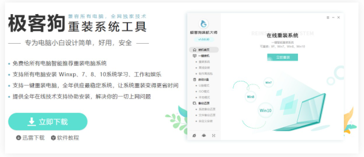 1、在浏览器上下载并安装“极客狗装机大师”软件(原黑鲨)。