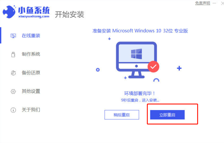 3.等待软件下载部署完成后,点击“立即重启”;