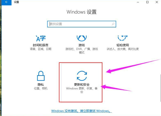 1.按下键盘win+i键打开设置界面,点击“更新和安全”。