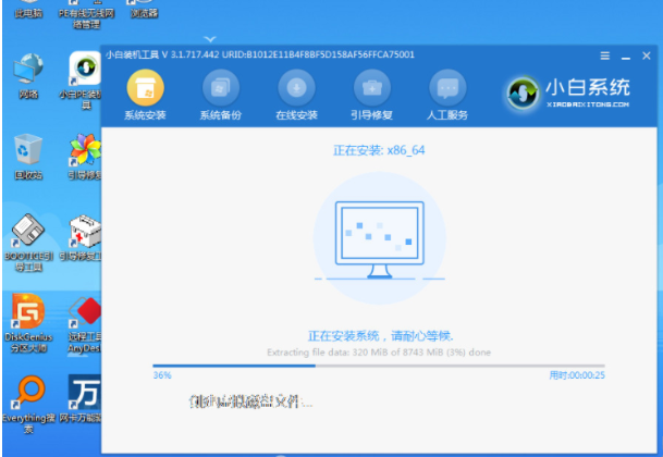 6、进入后,小白装机工具自动打开安装win10系统并再次重启电脑。