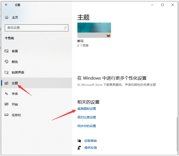 2、点击左侧的主题,之后点击桌面图标设置。
