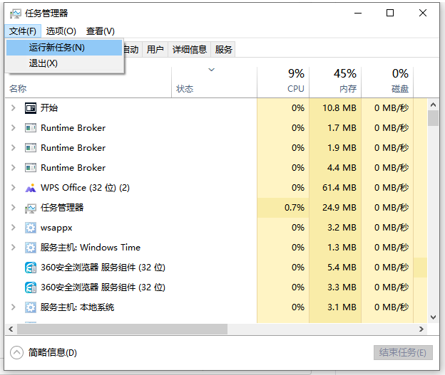 2、点击【文件】,然后点击【运行新任务】。