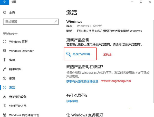 Win10企业版永久序列号激活步骤:开始—设置—更新和安全—激活—更改产品密钥—输入产品密钥—激活。