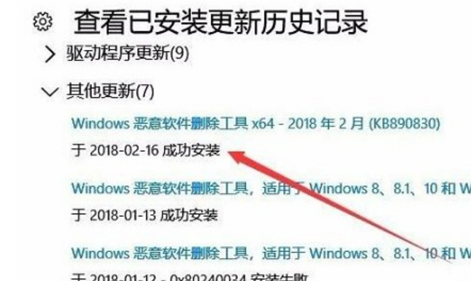 5、完成之后点击下方的“查看已安装更新历史记录”。
