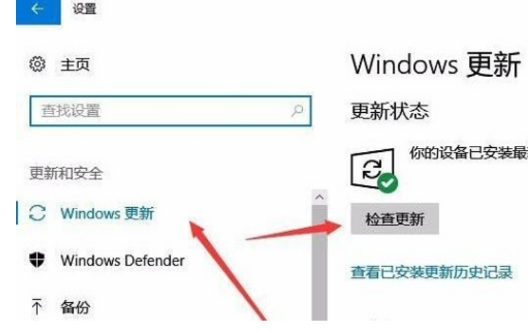 3、在里面点击左侧的“windows更新”再点击的“检查更新”。