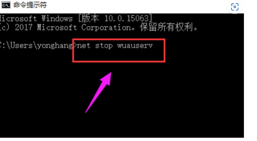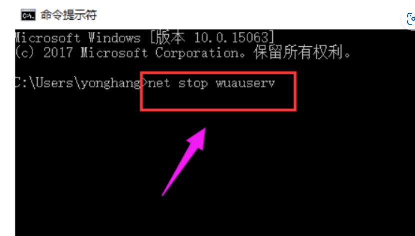 4、重复步骤1,输入“net start wuauserv”。