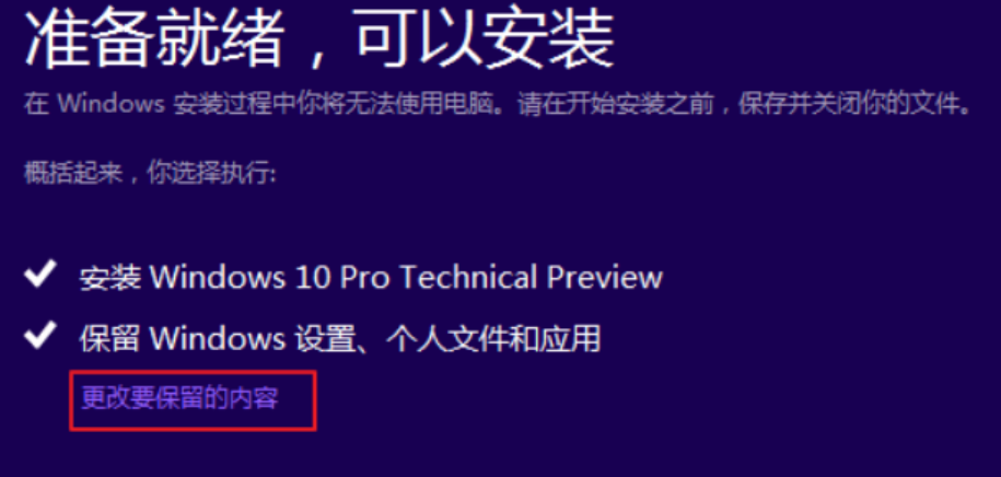 6、在开始安装之前,点击“更改要保留的内容”。