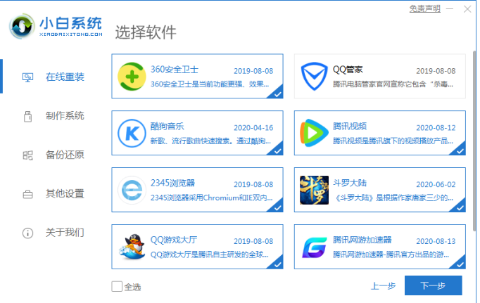 1、首先下载安装小白一键重装系统软件并打开,点击在线重装,选择我们需要的系统,点击安装此系统,点击下一步。