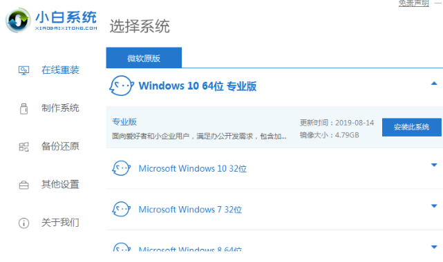 1、在小白一键重装系统中安装win10系统。