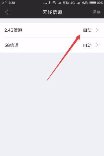 3.在打开的无线信道设置页面,点击要设置的信号 ,如2.4G信道