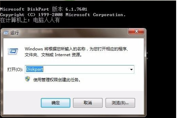 首先点击电脑桌面的开始→运行→输入:Diskpart 点击确定打开CMD。