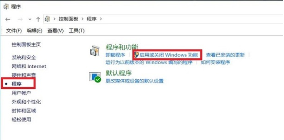 3、选择左侧【程序】中的【启动或关闭windows功能】。